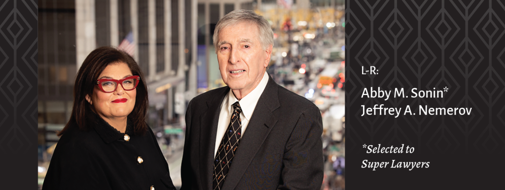 Equipped with a relentless passion for justice and incomparable negotiation skills, attorneys Abby M. Sonin and Jeffrey A. Nemerov have garnered national recognition for resolving high-stakes matters.